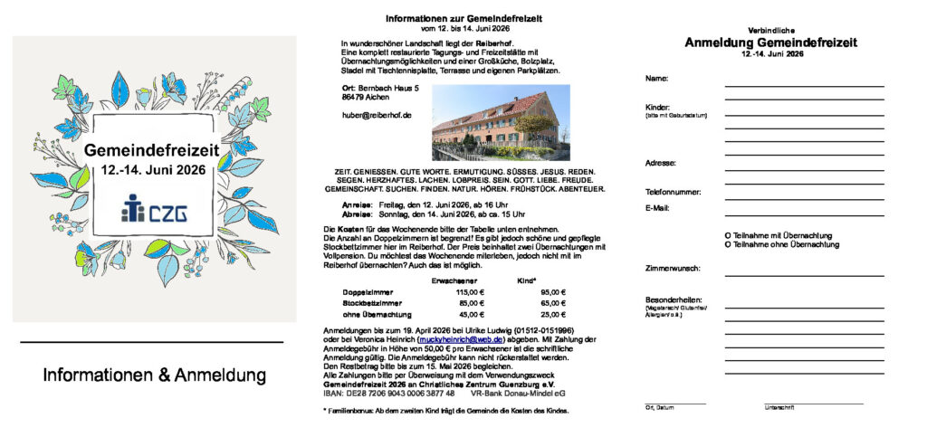 Bitte gebt uns Bescheid, ob ihr dabei seid. Entweder kurze Mail an info@czgz.de oder Eintrag in die ausliegende Liste am Gemeinde-Eingang. Wir freuen uns sehr darauf, diesen Morgen mit euch zu verbringen!